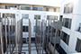 正方形のモチーフでつくられた中庭を囲み、東西南北に4棟建ち並んだ集合住宅です。中庭側とバルコニー側に大きな開口部があり、プライバシーを保ちながら、自然採光や風通しが充分にできるようにしてあります。それぞれの玄関前には2,3戸で共用のテーブルをしつらえ、外で集える空間としました。2階建ての北側の上には屋上庭園があり、自然に囲まれた中で、日光浴や眺望を楽しむことができます。中庭には、テーブルやベンチや池があり、居住者の方すべてがそこを通り、自然な形で顔をあわせるようにしました。約35m²のワンルームが中心ですが、室内は可動家具の移動によって、領域に変化をつけることができます。また可動棚がつき、扉で隠す収納を多くつけると共に、グリッド状の飾り棚により見せる収納も用意しました。3階には、吹抜けのある66m²と50m²のメゾネット住居もあります。(谷内田章夫)